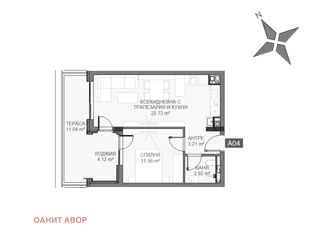 Тип: Двустаен апартамент