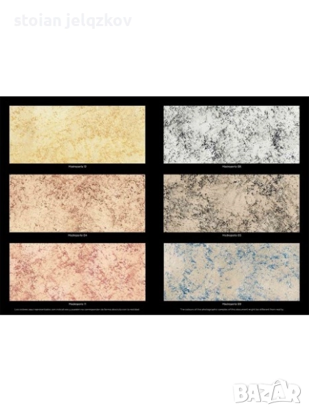 Декоративна боя с перлен блясък и модерен и елегантен вид. Съставът и се основава на цветни частици (флокули) и метални пигменти. Гамата се състои от 6 готови за употреба цвята: референции 03, 04, 08, 09, 11 и 12. Разнообразието от цветове може да се умножи чрез комбиниране на тези 6 референции с цветни фонове. В допълнение, крайният ефект може да бъде обогатен чрез добавяне на Glitter добавки с различни цветове.Може да се нанася върху предварително подготвени повърхности.Количество 2,5л.