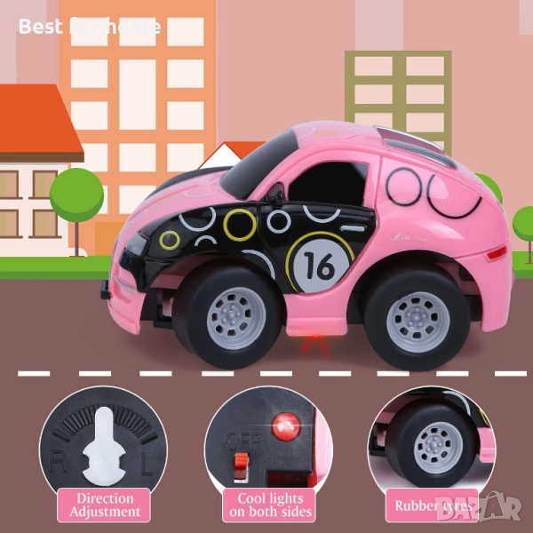 COYYERC Количка с дистанционно управление, Мини RC розова играчка количка за 2, 3, 4, 5 и 6 годишни момчета и момичета, Играчки с дистанционно управление със светлина за детски подаръци за рожден ден
