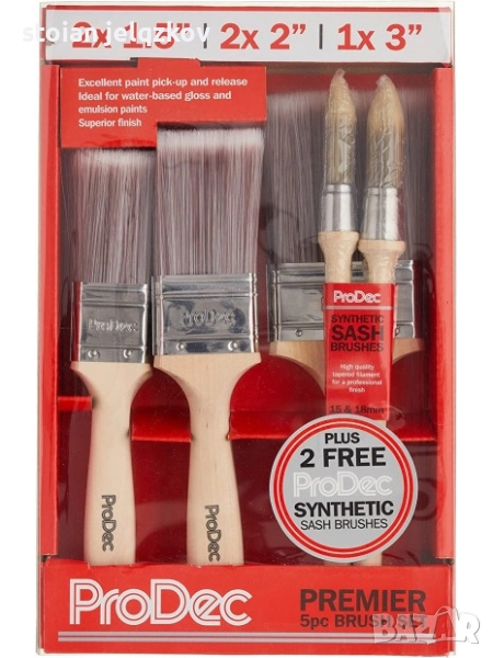 Сет от 7 броя висококачествени четки за бои и лакове направени от 100% SRT влакна за подобрен финиш. С дървена дръжка и тяло от неръждаема стомана за по- дълъг живот на продукта. Сетът съдържа и две безплатни кръгли четки с мек косъм за използване за детайлни работи около прозорци, архитрави и корнизи.