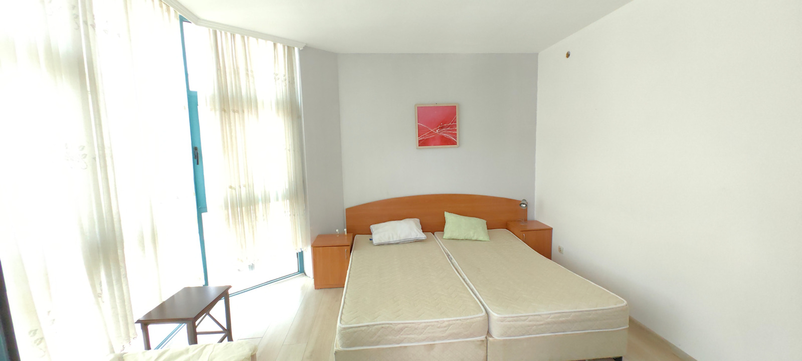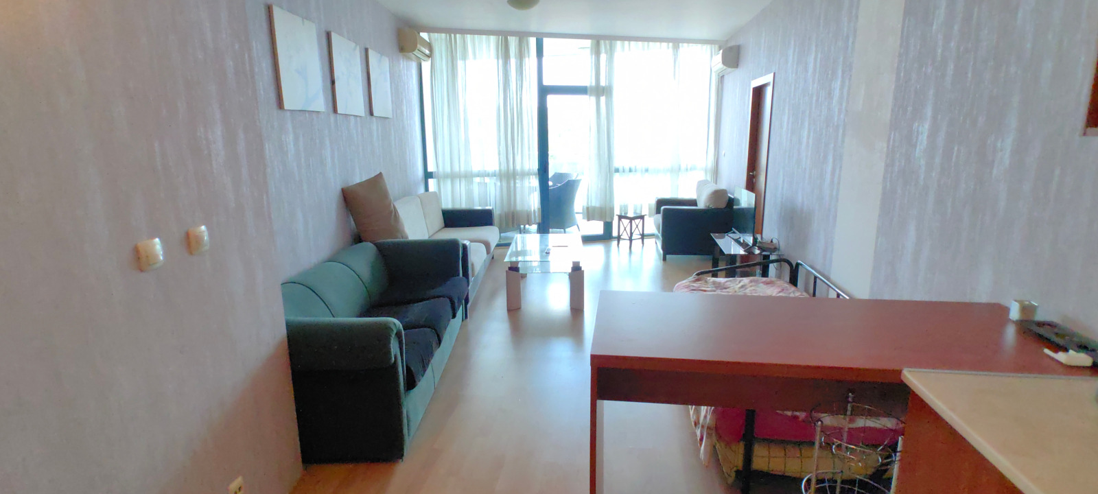 Разпределението на жилището е функционално и включва антре, просторна всекидневна с кухненски бокс, два спални, баня с WC и две тераси, едната от които с изглед към северния плаж на градчето. Апартаментът е разположен на 3-ти етаж на сградата и е с площ от 99 кв.м.