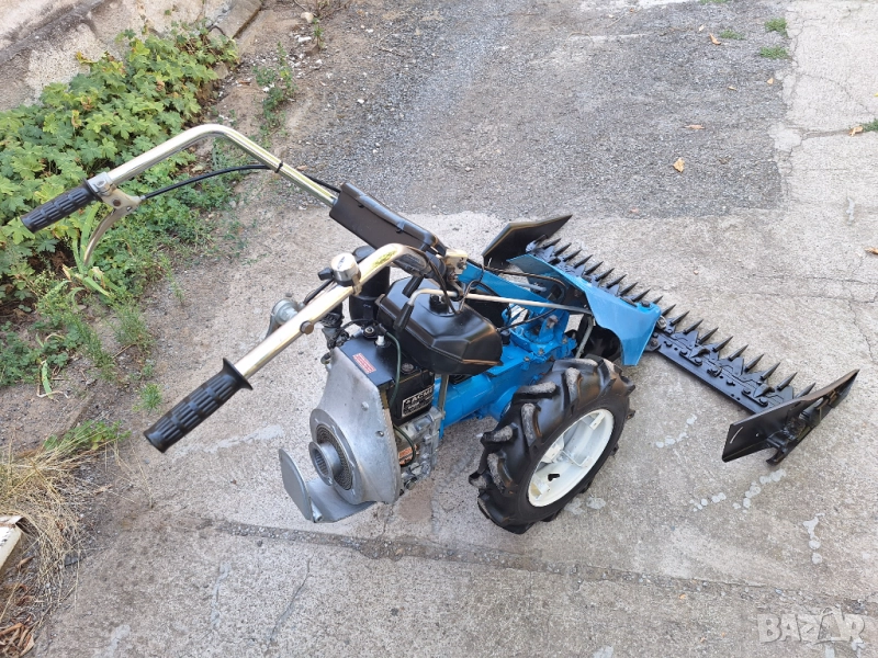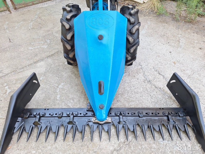 Палцова косачка Бчс, модел 730, общо 8 скорости [бързи+бавни]. Двигател ACME, 10к.с. бензинов, 4-тактов. 115см нож за косене. Отлично функциониращи двигател, скорости и косилен апарат. Хубав, оригинален нов нож за косене. Професионална от най-висок клас. Най - доброто от този тип сенокосачки. Изключително подходяща и за планински, наклонени и лоши райони. Лека и удобна. Събира се в туристическо ремарке и във всякакъв автомобил при сгънато положение. Ширина на ножа за косене 115см. , височина с дръжките около 90см. , дължина с дръжките около 150см. Не е ползвана в България, напълно нов внос от Италия. Изправна, пали от раз, намира се в гр. Кюстендил и може да се види по всяко време. Цената е 1750 евро и е без коментар.
