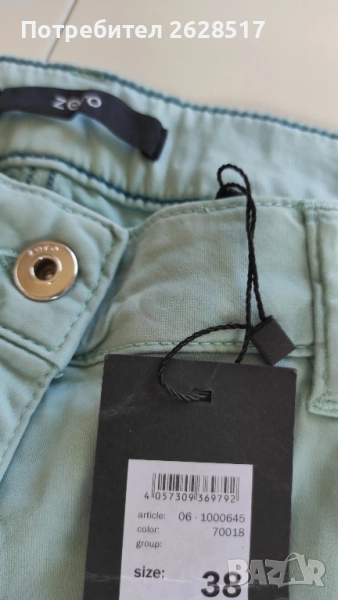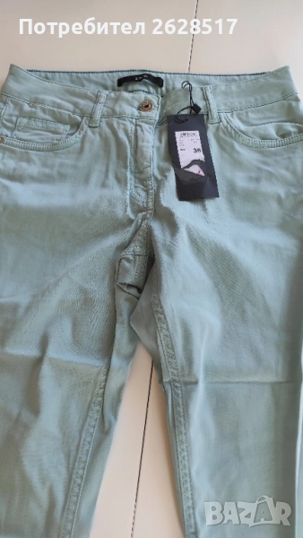Панталона е нов с етикет, материята е памук и еластан размер S има еластичност. Дължината е малко под коляното. Изпращам с опция за преглед и тест