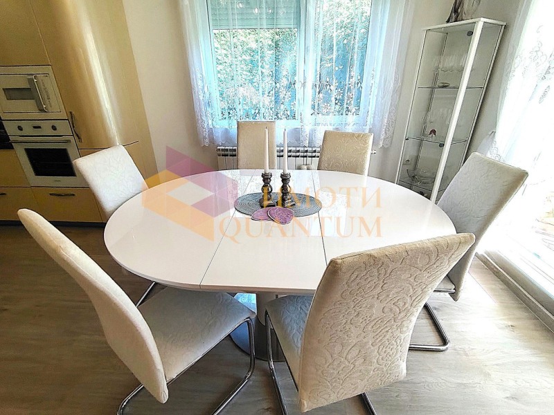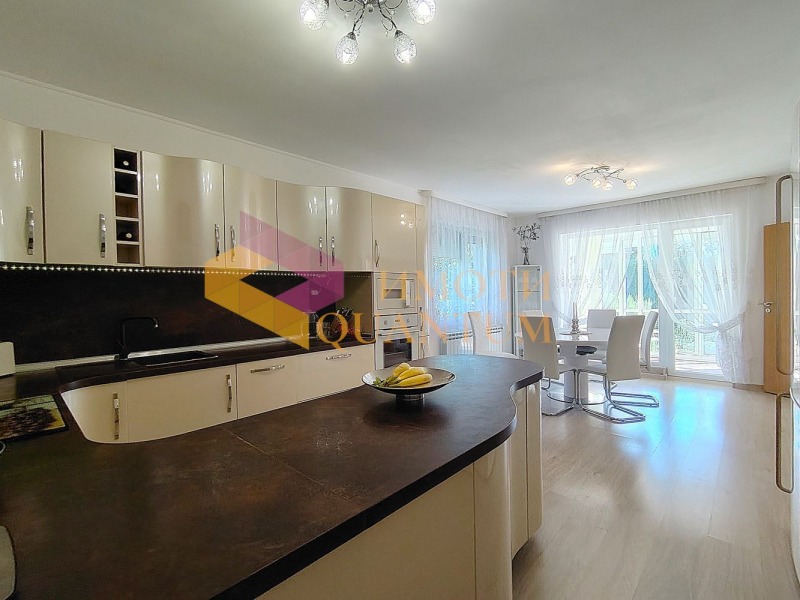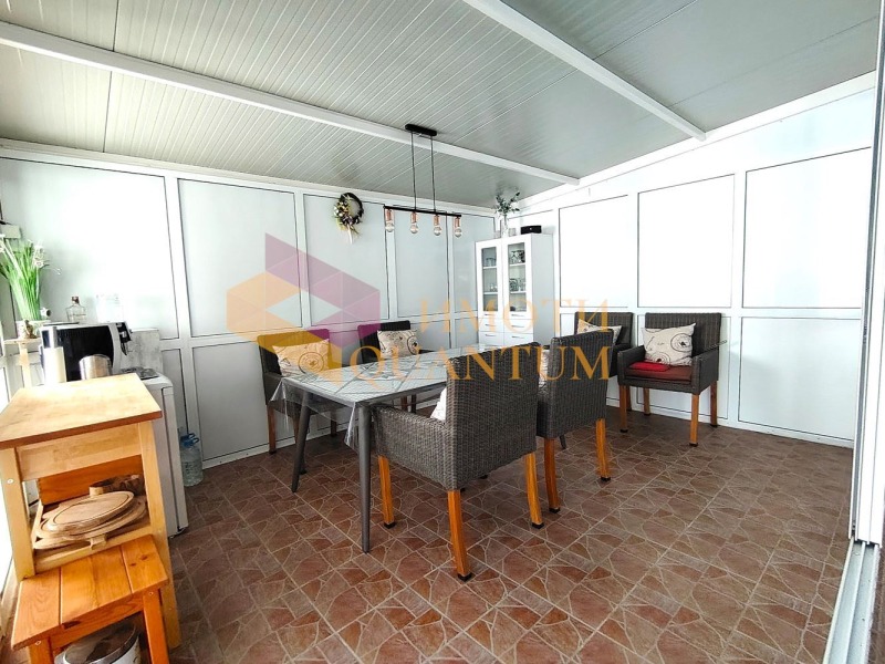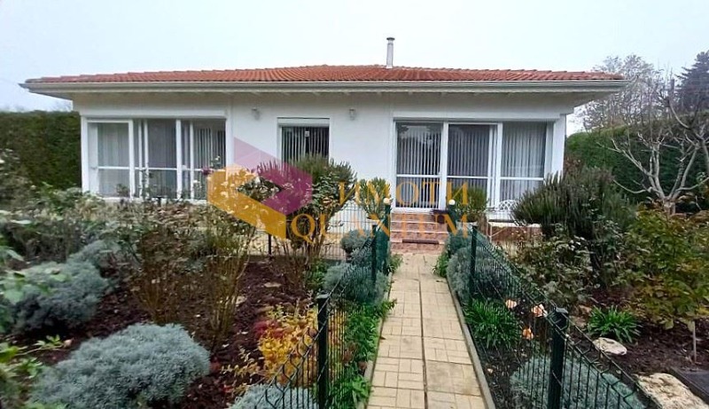 Къщата е едноетажна с площ 150 кв.м и се състои от просторна дневна с кухненска и трапезна част, хол/спалня, още две спални, два комбинирани санитарни възела, килер с котел на пелети и три изцяло остъклени тераси. Всички стаи са добре осветени, с големи прозорци и монтирани външни ролетни щори, които допълнително предпазват от летни горещини и зимен студ. Къщата е изцяло оборудвана и обзаведена с много вкус - продава се във вида от снимките.