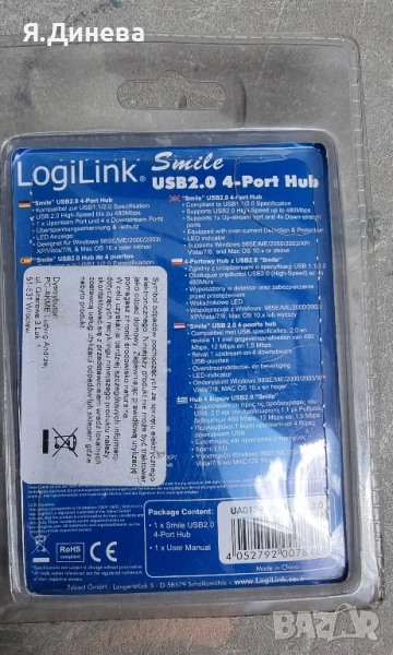 Това е USB 2.0 хъб с 4 порта на марката LogiLink, модел "Smile" UA0085.