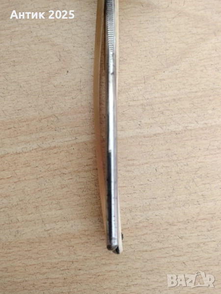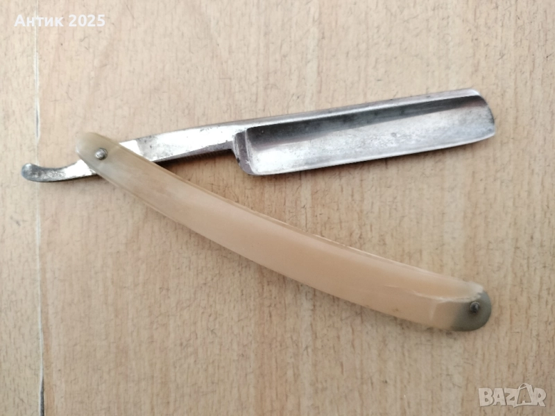 Продавам стара бръсначка с открито острие (опасна самобръсначка). На острието ясно се вижда маркировката CHAMPION. Състояние: Острието е с потъмняване и следи от времето, нуждае се от почистване/полиране. Дръжката е пластмасова, има пукнатина (виж снимките). Механизмът за сгъване работи. Подходяща за: Колекционери на стари самобръсначки. Реставрация или използване като експонат/декор.
