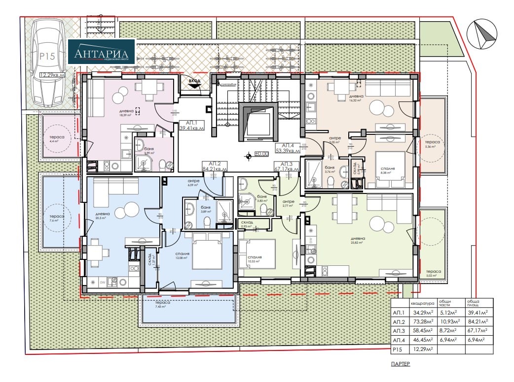 Апартаментът е на партерен етаж, състои се от дневна с кухненски бокс, спалня, баня с тоалетна и балкон.
