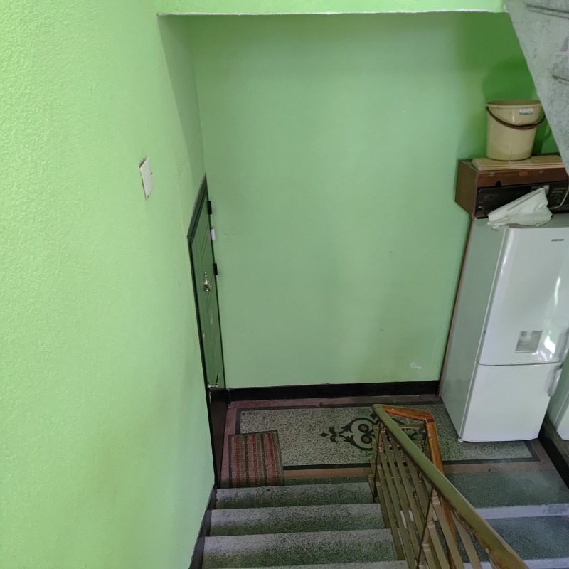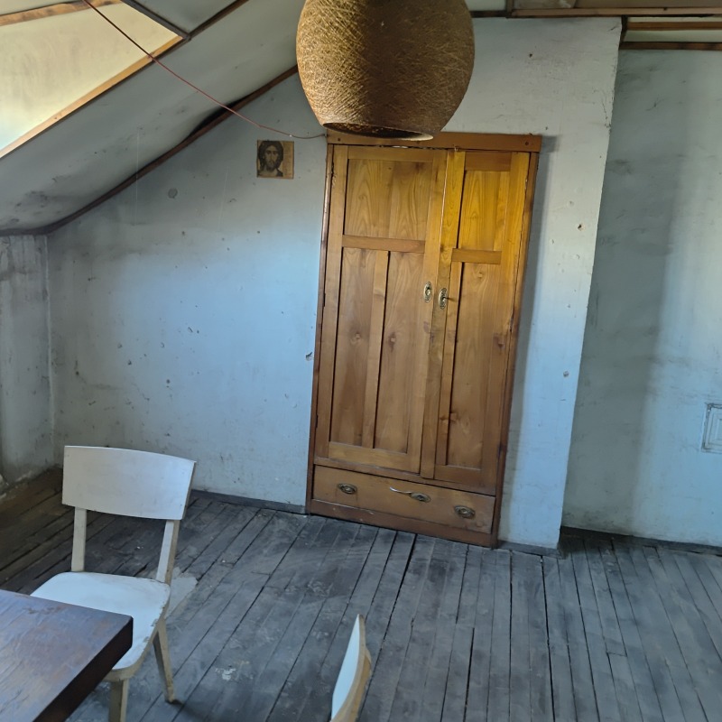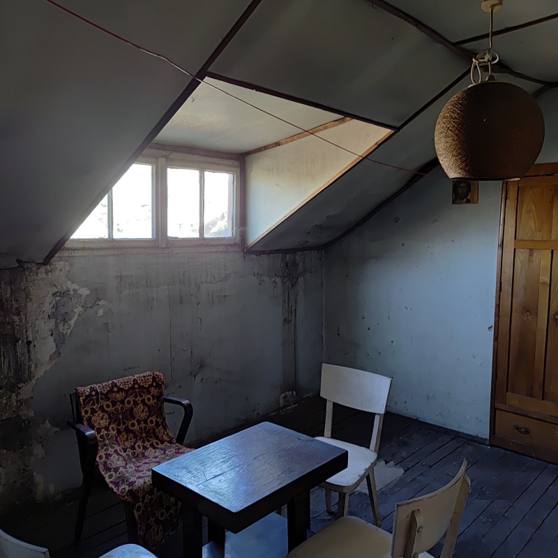 РАЗПРЕДЕЛЕНИЕ: Коридор, две спални ,кухня,трапезария,вестибюл-всекидневна,баня, тоалетна,тераса. В имота има скосения в някои от помещенията,говорено е със другият собственик,и може тавана да бъде изравнен и да се премахнат скосенията.Към имота има мазе около 25 кв.м.Имота е за тотален ремонт.Към сградата има вътрешен двор.Собственика има и 1/6 идеална част от земята която е 411 кв.м. което в проценти е 18%.Ако за в бъдеще се реши за се строй на мястото.