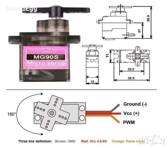 ⚠️ За пълен контрол в диапазон 0°–180° се препоръчва използване на професионален PWM Servo Controller.