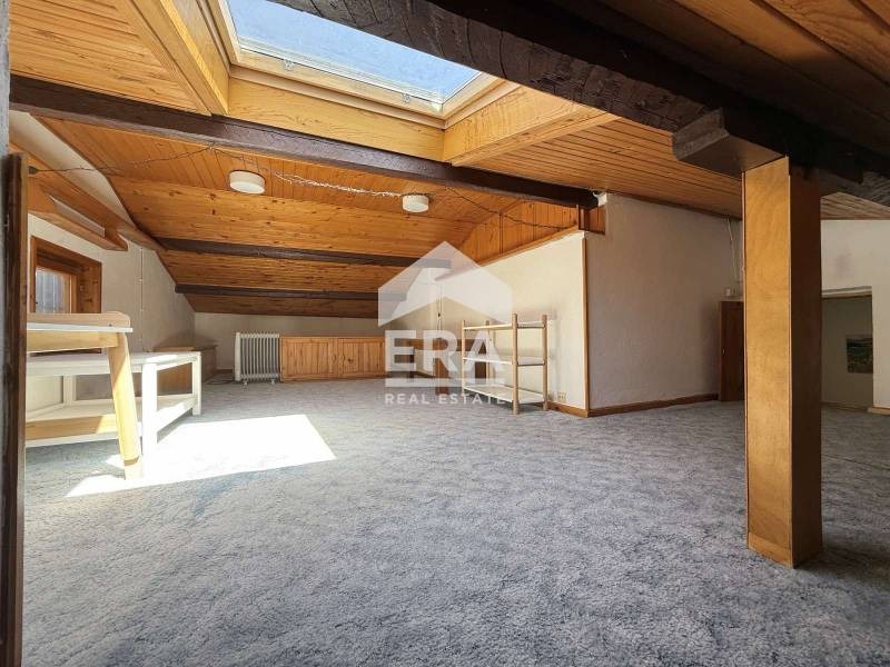 Къщата предлага просторна и светла всекидневна с трапезария, отделен кухненски бокс, излаз към веранда и дворното пространство, 2 спални с излаз до просторна тераса, трета спалня, детска стая с достъп до таванска стая, офис с излаз към балкон, 3 бани с тоалетна и 1 отделна тоалетна. На приземен етаж са разположени склад, мокро помещение, просторен гараж за 2 големи автомобила и място за паркиране отвън.