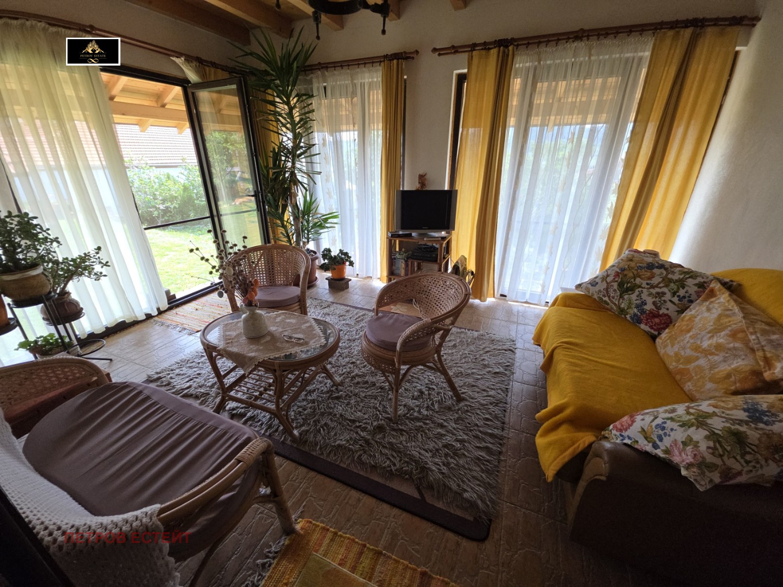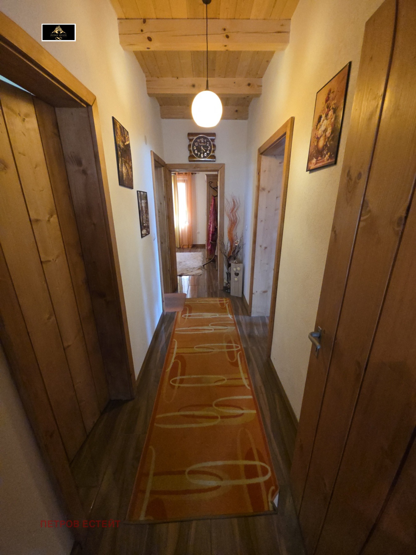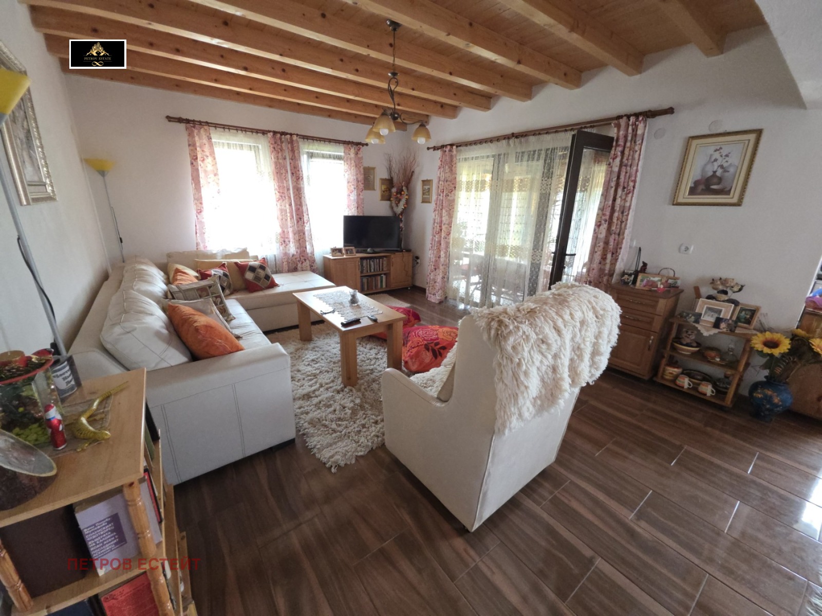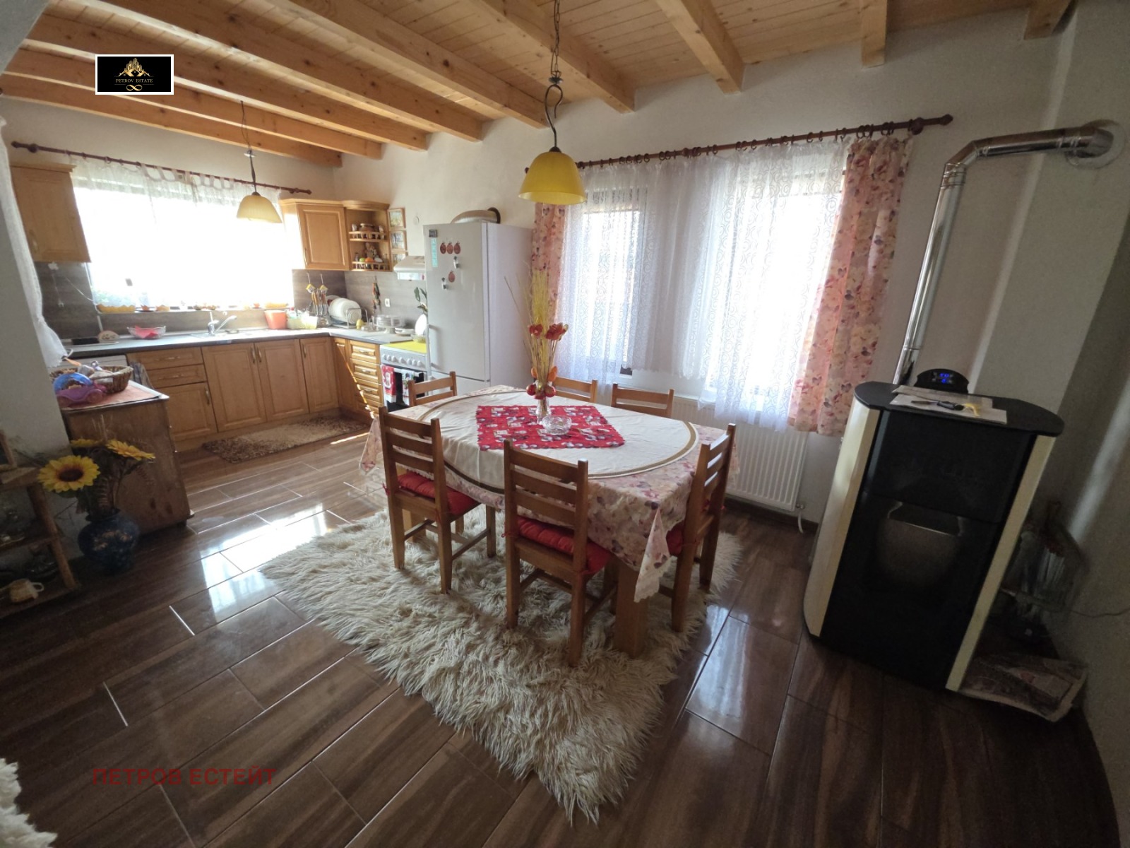 Основната къща се състои от входен коридор, просторен и светъл хол с трапезарна част и кухненски бокс, гостна стая с френски прозорци и красив изглед, спалня, баня с тоалетна и складово помещение. Къщата се отоплява с парно на пелети, с радиатори и подово отопление.