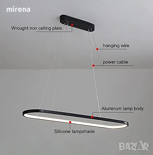 - Регулируема височина: Дължината на окачване на модерния LED полилей може да се регулира свободно в рамките на 120 см (стандартна височина).