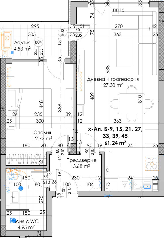 ЗАСТРОЕНА ПЛОЩ - 61,24 кв.м