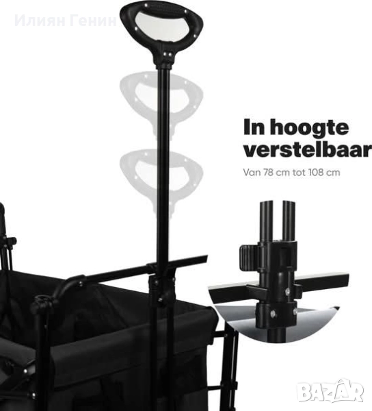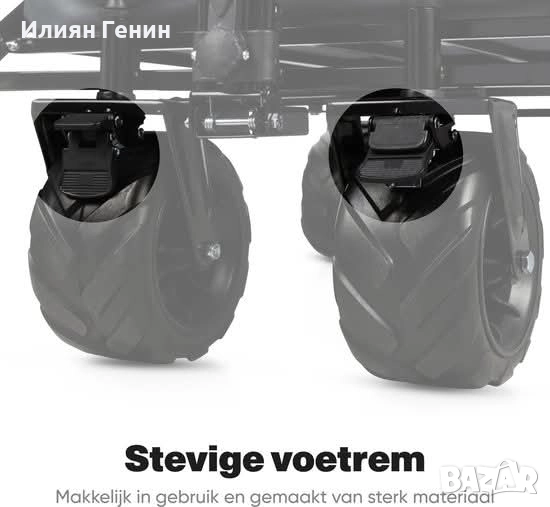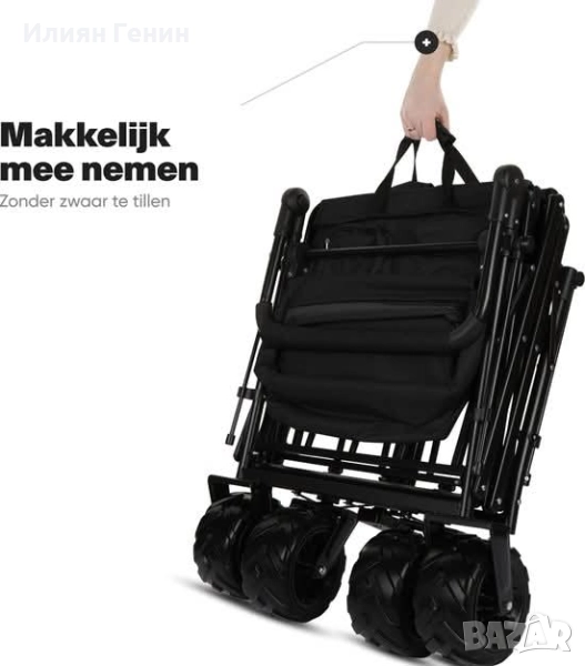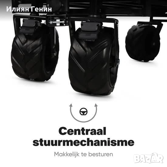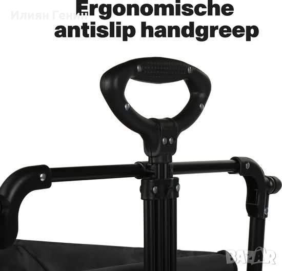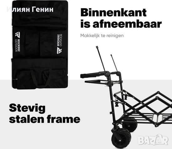 Независимо дали искате да вземете децата си или да транспортирате вещите си, ръчната количка е винаги полезна за всяка дейност на открито! С удобни отделения за съхранение отпред, отзад и отвътре, можете да вземете всичките си вещи със себе си за нула време. Тази сгъваема ръчна количка се сгъва без усилие до компактен размер, което я прави лесна за транспортиране в кола, кемпер или каравана. Лекото ѝ тегло и устойчивата на UV лъчи, вода и петна полиестерна тапицерия (600D двуслойна Oxford тъкан) правят тази ръчна количка идеална за всякакви дейности. А след употреба можете лесно да извадите интериора и да го почистите, ако е необходимо.