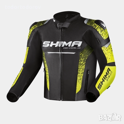 Кожено мото яке SHIMA STR 2.0 Fluo/Black гърбица,протектори,вентилация.