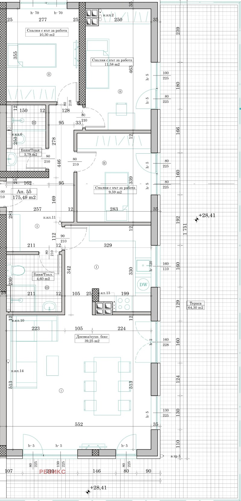 Апартаментът е с чиста жилищна площ от 175,49 кв.м и обща площ от 199,83 кв.м. Жилището предлага просторен дневен тракт от 39,25 кв.м, три самостоятелни спални с площ от 11,58 кв.м, 10,30 кв.м и 9,59 кв.м, две бани съответно 4,60 кв.м и 3,79 кв.м, както и лоджия с площ 64,30 кв.м. Изложението е югоизточно. Към имота е включено избено помещение 12 с площ от 5,22 кв.м. Има възможност за закупуване на паркоместа.