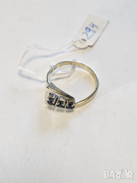 Дамски пръстен, бяло злато със сапфир 585/14к 2.94гр → Обява 51531677