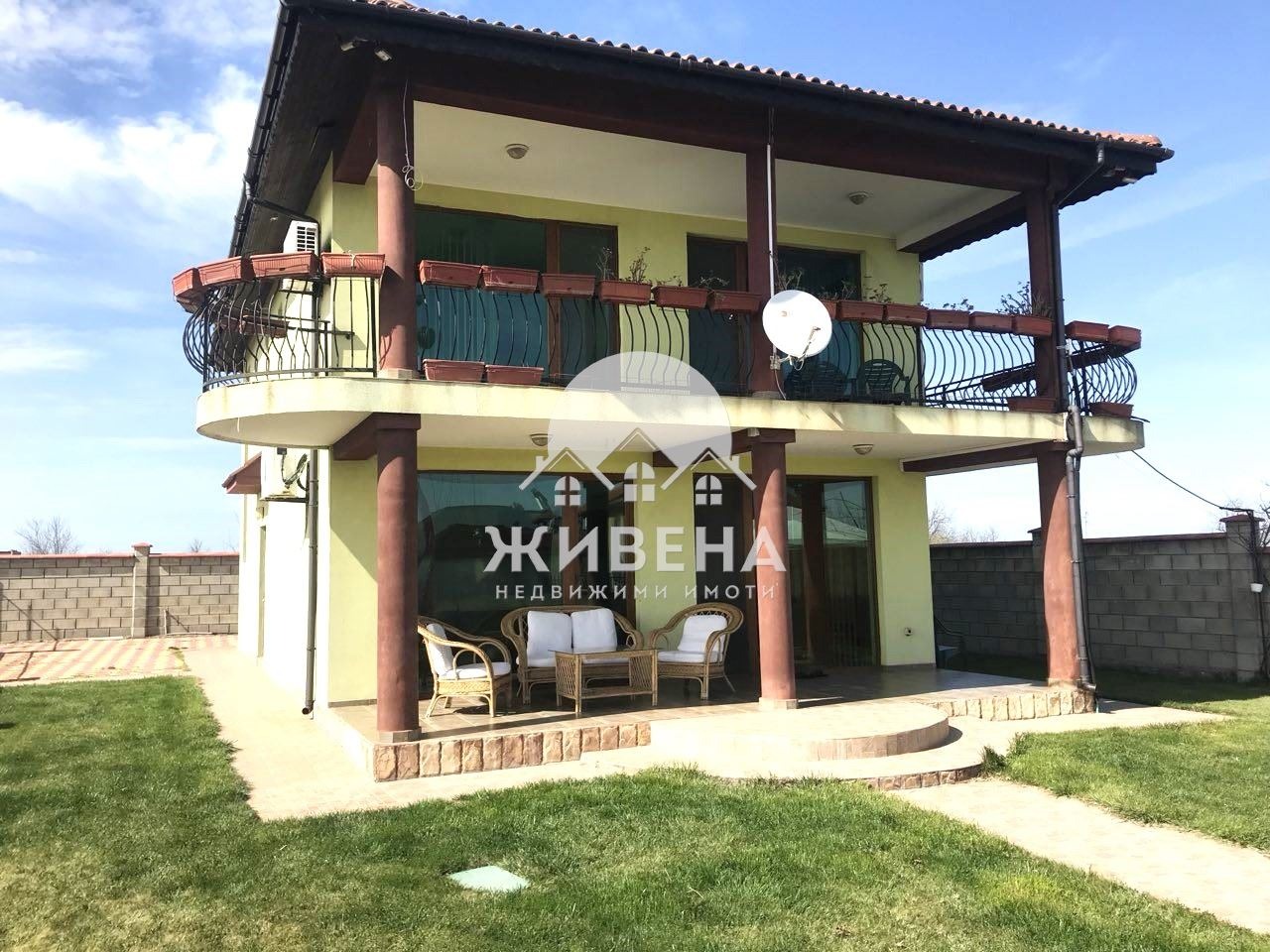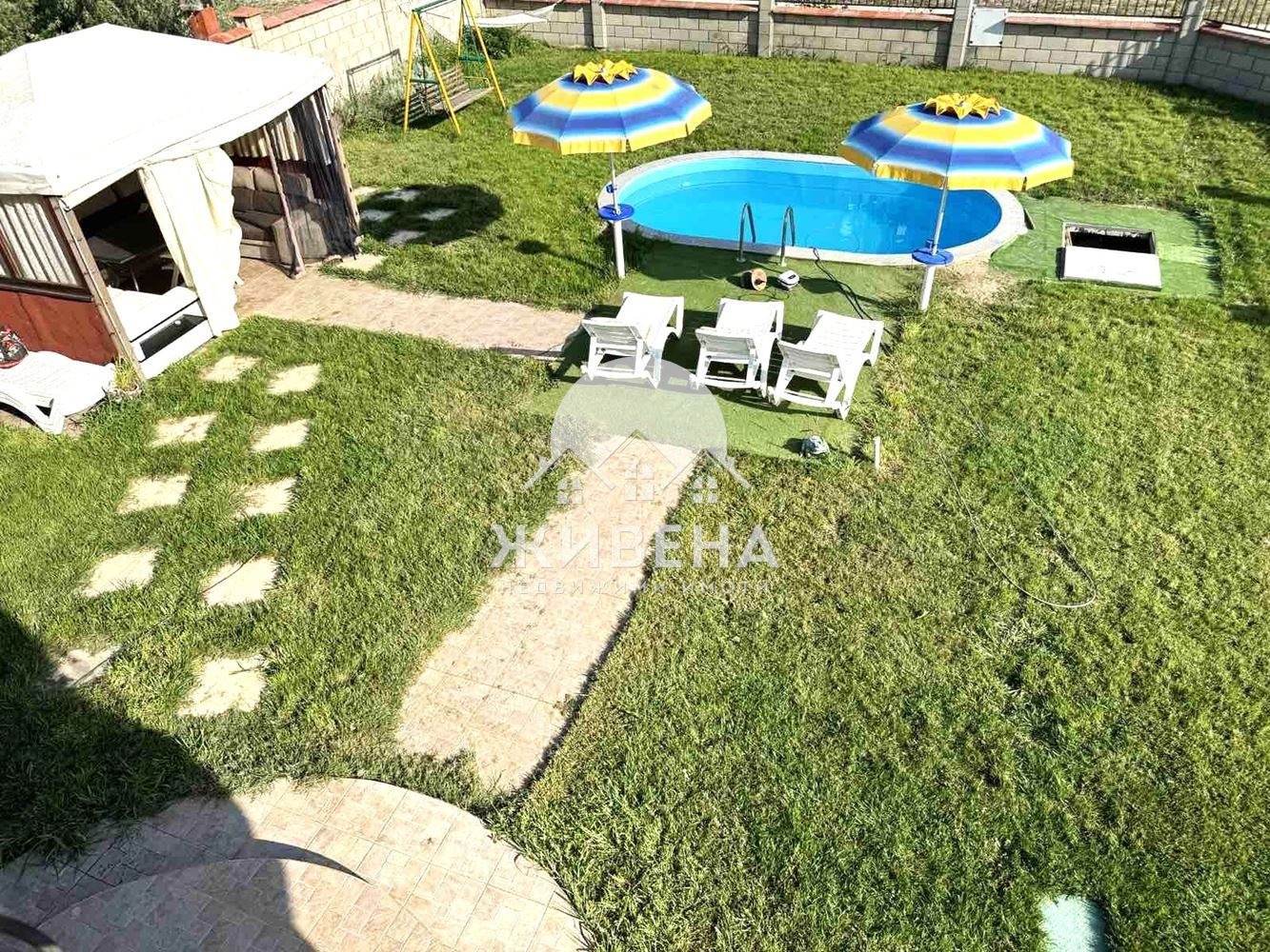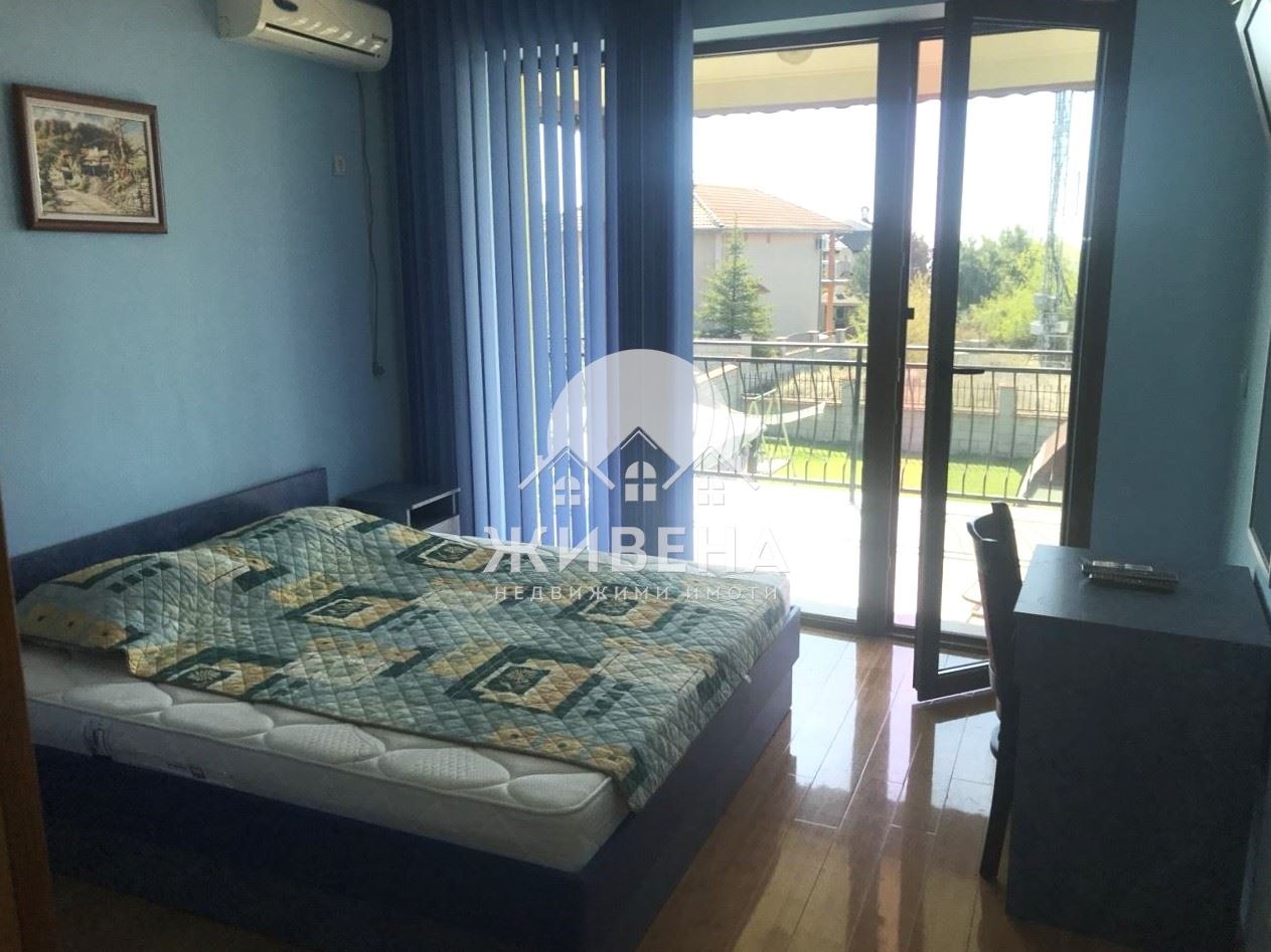 Агенция ЖИВЕНА продава прекрасна двуетажна къща с невероятна МОРСКА ПАНОРАМА. Намира се във вилната зона на село Топола в близост до голф игрищата и на 10 км от Балчик. Построена е през 2010 г., с акт 16, ток и вода с партиди, с топлоизолация. Застроената площ на къщата е 90 кв.м, РЗП: 196 кв.м и има следното разпределение: Първи етаж: коридор, просторен хол с трапезария и кухня (50 кв.м), с излаз на покрита веранда, баня, перално помещение и стълби към втория етаж. Втори етаж включва три спални, всяка с отделна баня и тоалетна, просторна обща тераса с красив изглед към морето. Къщата се продава обзаведена и оборудвана. Парцелът е с площ - 565 кв.м, ограден с масивна ограда. Има паркинг за три автомобила и 24 - часово видеонаблюдение с 8 камери. В двора е изградена автоматична поливна система и кладенец с хидрофорна система. Има новоизграден, действащ басейн с размери 5м/3м и обзаведена лятна беседка с кът за барбекю. Прекрасен имот за лятото, удобен за къща за гости. Агенция Живена извършва необходимите проверки на имота, който сте избрали, организира всички етапи на сделката до нейното финализиране. Оказваме съдействие за отпускане на банков кредит. Оферта 6299