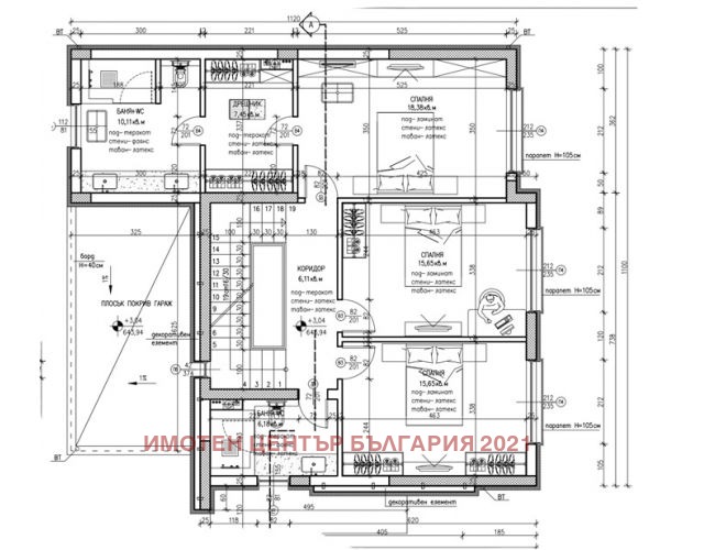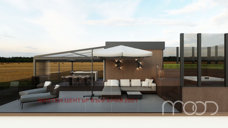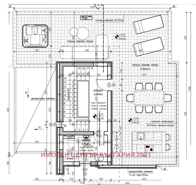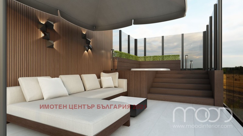 🔹Плосък покрив с огромна покривна тераса, която Ви несравнима гледка и възможност за релакс зона с джакузи, шезлонги, фитнес и барбекю.