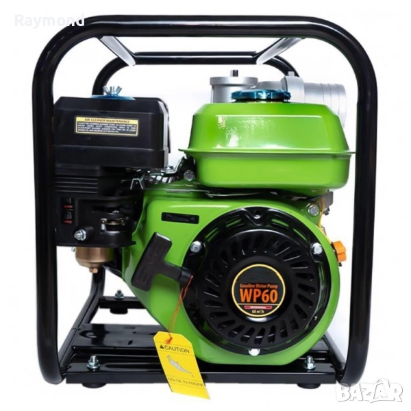 Бензинова – Моторна помпа за вода 3 цола Моторна водна помпа се задвижва от четиритактов бензинов двигател, подходяща за използване на места, където електричеството не е налично или използването на електрическа помпа не е безопасно. Бензинова градинска помпа може да се използва за чиста вода, за поливане на големи площи с насаждения, за изполмпване и отводняване на малки и големи по обем водни помещения, басейни, мазета и др. Помпата е доказана и е предпочитана от земеделци/производители. Технически параметри: – Работен обем двигател: 180 см³ – Максимална 4.1 Kw, / 5.5 к.с. – Двигател: бензинов, едноцилиндров, четиритактов с въздушно охлаждане – Масло в картера: 0.6л – Горивен резервоар: 3.8л – Максимална дълбочина на засмукване: 7 метра – Максимален дебит: 60000 литра/час – /60 м3/час – Максимален напор: 28 метра (височина, на която може да изпомпа вода) – Диаметър на входа: 75 мм. (3 инча/3 цола) – Диаметър на изхода: 75 мм. (3 инча/3 цола) – Диаметър и ход: 68 х 54 мм – Ниво на звуково налягане: LpA = 83 dB(A) – Ниво на звукова мощност: LwA = 98 dB(A) – Тегло: 25 кг