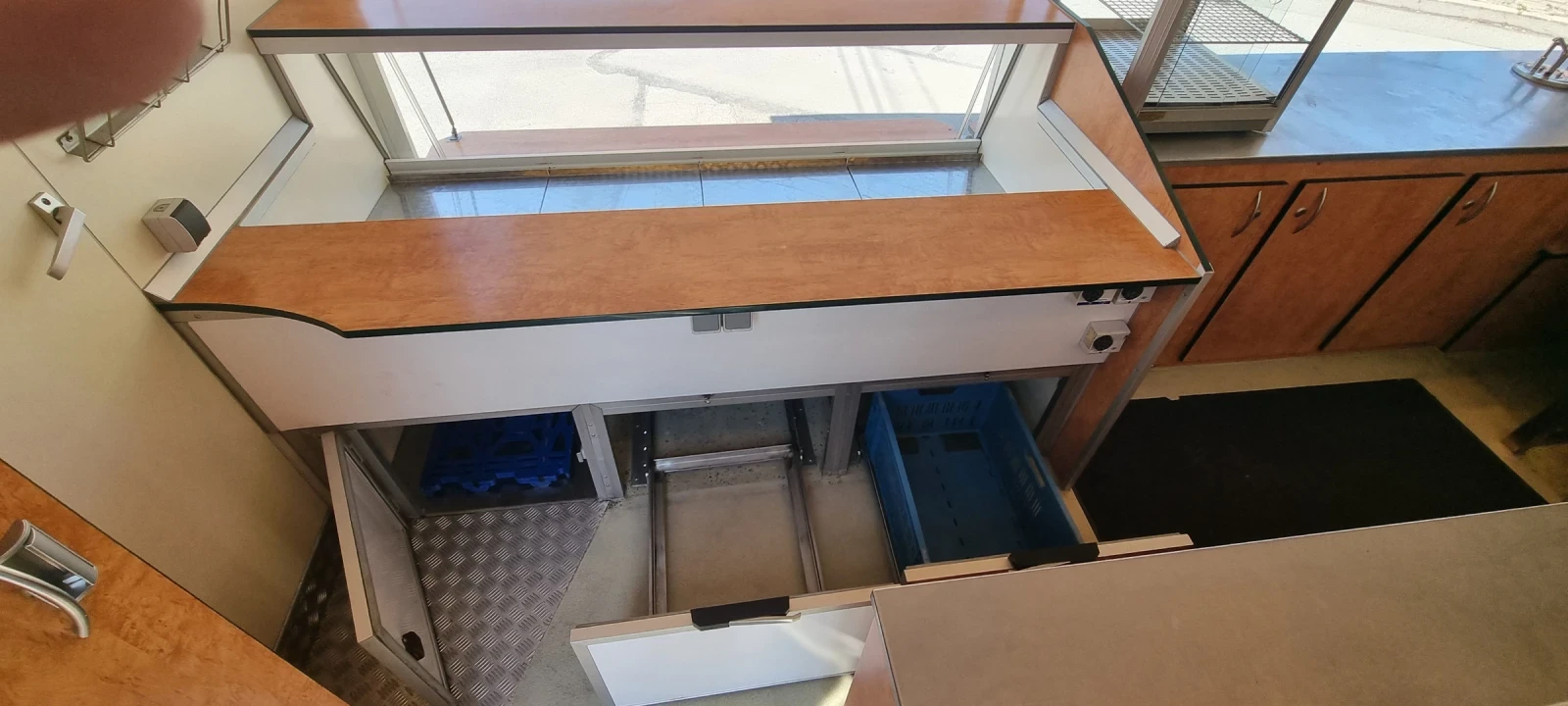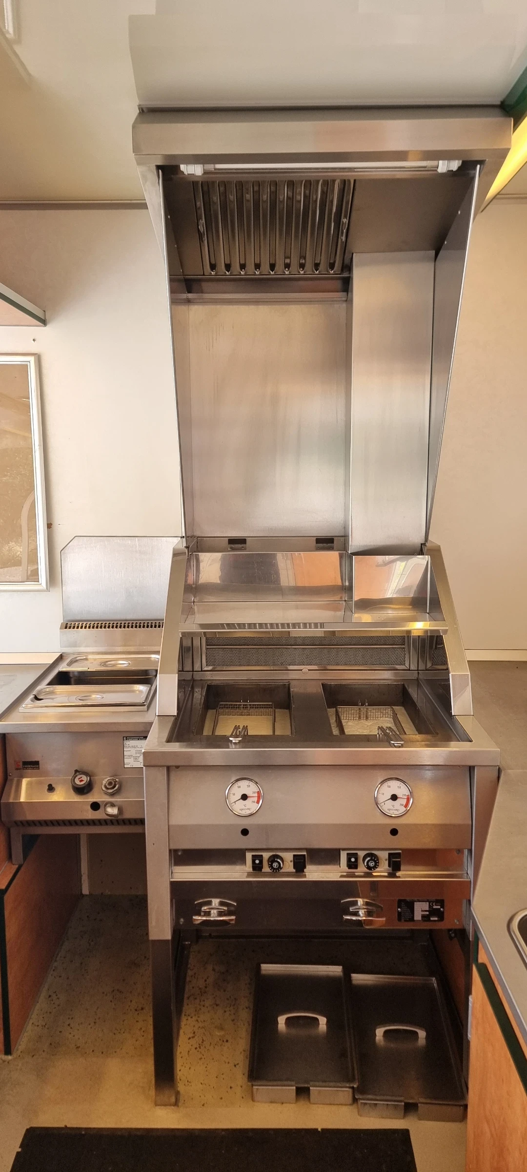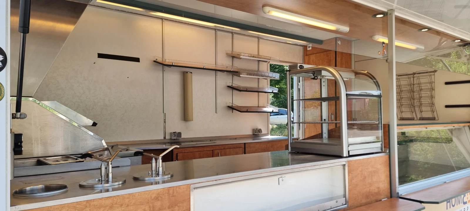 Оригинален мобилен кемпер, работна площ Д4. 50м, Ш2. 20м, В2. 20м, двоен газов фритюрник+аспирация, газово бен мари, газов котлон, електрическо бен мари, хладилна витрина 2м+3бр. хладилни склада, двойна мивка+бойлер+резервоари за мръсна и чиста вода, електрическо отваряне на страничния капак. МОБИЛНИ КУХНИ-ФРАНИ ви предлага до оборудване по ваш избор. .. .