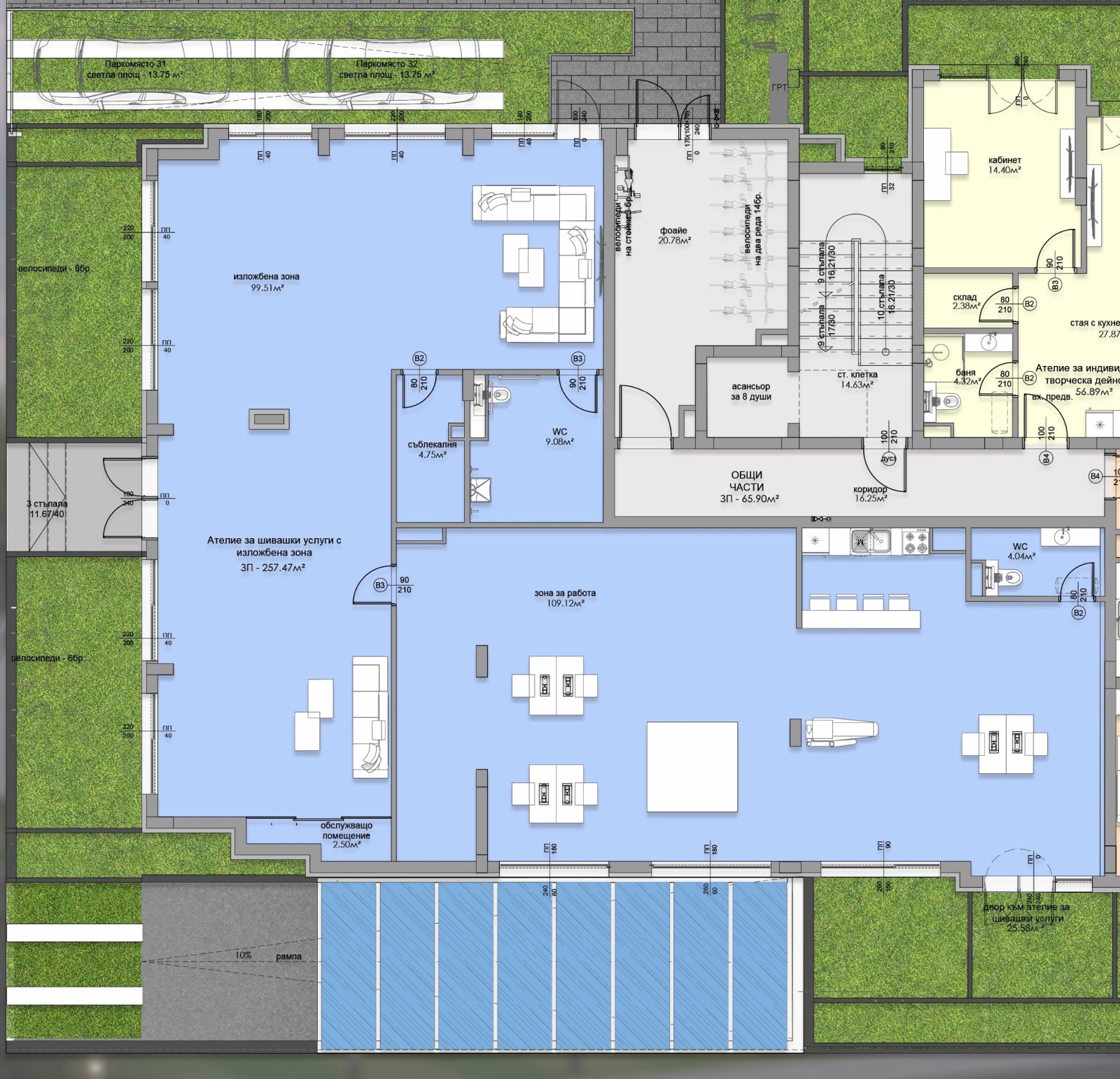 Търговско помещение 305 кв.м, на първа линия на ул. Живко Сталев, с голямо лице към булеварда и директен централен вход от улицата.