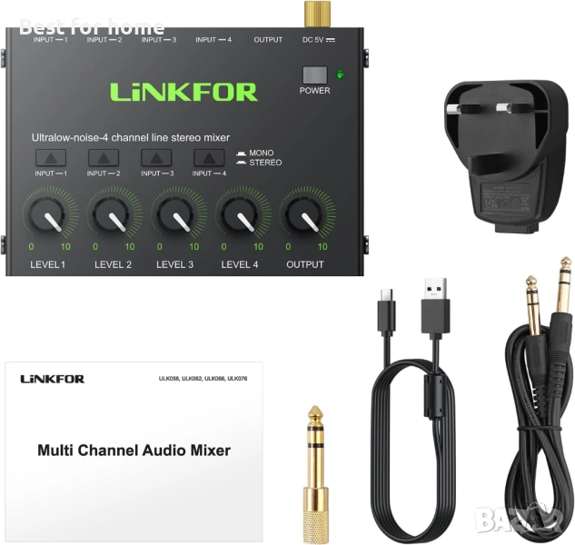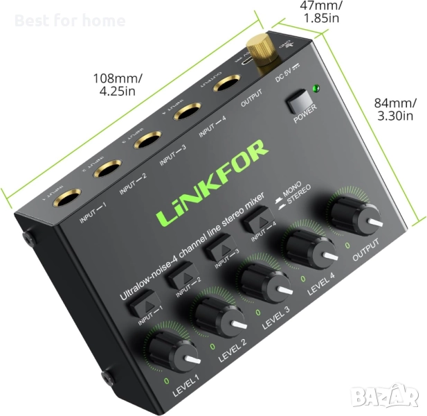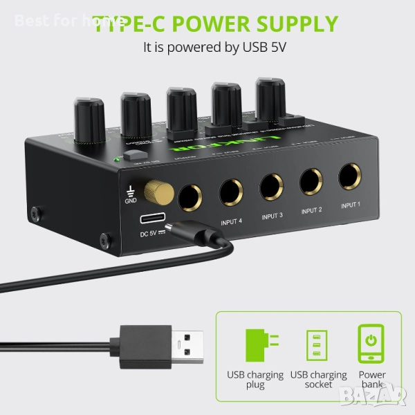 【Изключително ниско ниво на шум】 --- Стерео линейният миксер е с изключително ниско ниво на шум за впечатляващо аудио изживяване без смущения. Сертифицирано 5V захранване и захранващ кабел с магнитен пръстен осигуряват стабилна работа на продукта.
