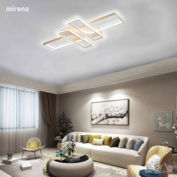 Модерно осветително тяло с геометрично моделиране, LED таванно осветление, акрилен панел/абажур, дистанционно димируеми лампи, 4-квадратно дизайнерско вградено осветление, осветление за коридор