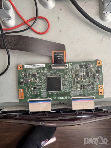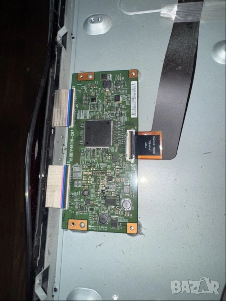 Телевизорът има проблем с основната платка. Всички останали компоненти включително матрицата са здрави. На една от снимките се вижда включена подсветката. Налична стойка.