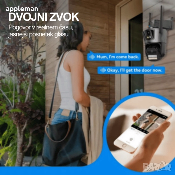 Двупосочно аудио: Вградените микрофон и високоговорител позволяват реалновремево видео и аудио комуникация с посетителя, независимо от вашето местоположение.