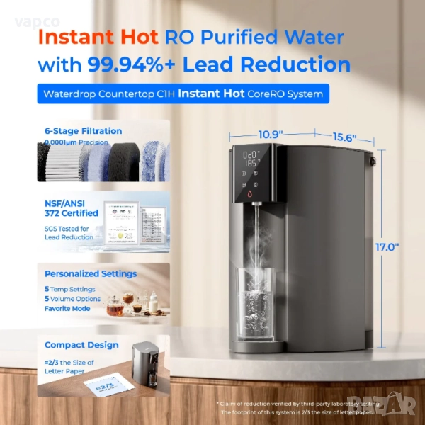 Гореща вода само за 3 секунди: Революционизирайте живота си със системата за обратна осмоза за плот, включваща авангардна технология за нагряване за 3-секундно незабавно загряване. Перфектна без усилие за успокояващ чай, освежаващо кафе и други, нейното удобство е предефинирано.