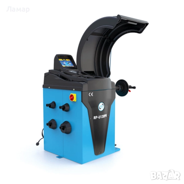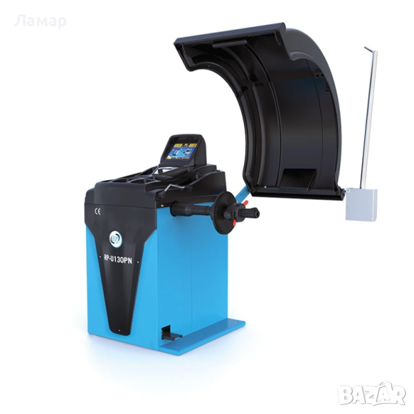 Напълно автоматична баланс машина за гуми на леки и лекотоварни автомобили - 230V, 10-32 инча с допълнитено рамо за измерване ширината на джантата и LCD дисплей; RP-TOOLS - Австрия Професионална баланс машина с микропроцесорна технология от RP-TOOLS за на колела на автомобили и мотоциклети (с опционални аксесоари).