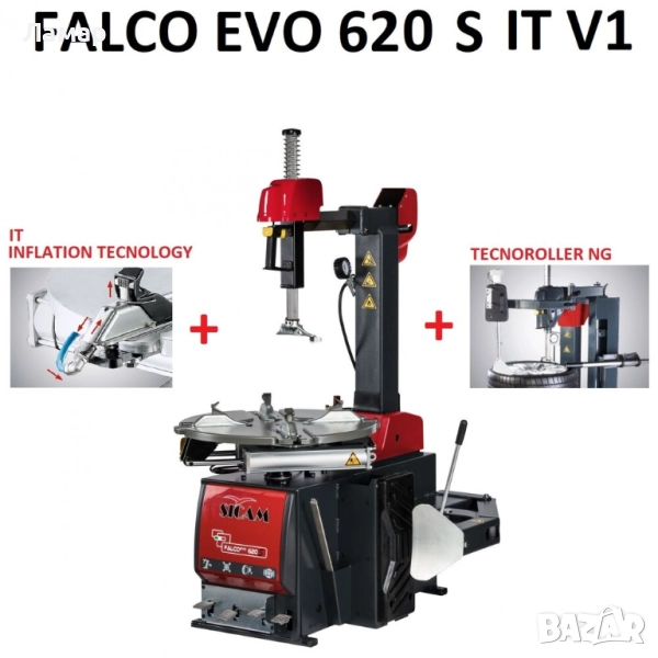 Автоматична трифазна гумодемонтажна машина за леки и лекотоварни автомобили с обхват на захватите 10” - 22” / 12” -24” FALCO EVO 620 S (1694302397 - ЧЕРВЕН ЦВЯТ RAL 3000); SICAM - Италия