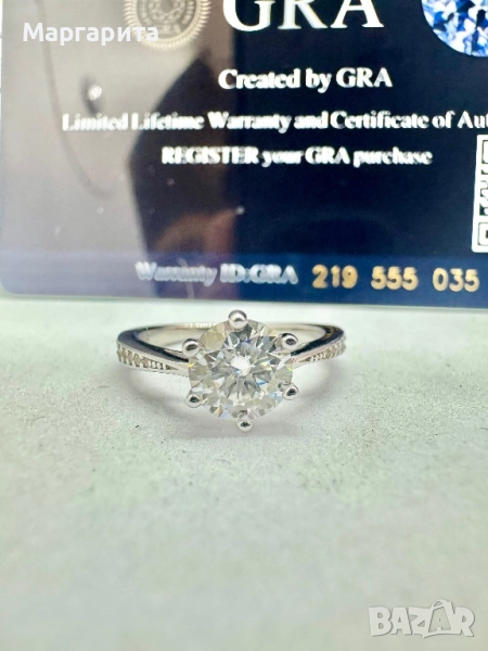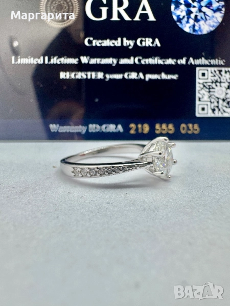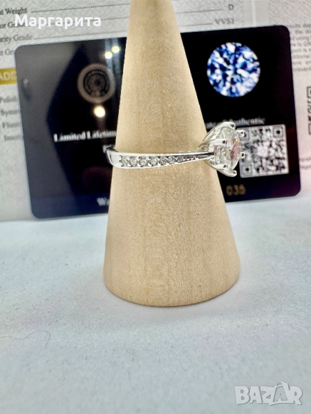 Сребърен пръстен с мойсанит (диамант) 1 карат → Обява 51534557