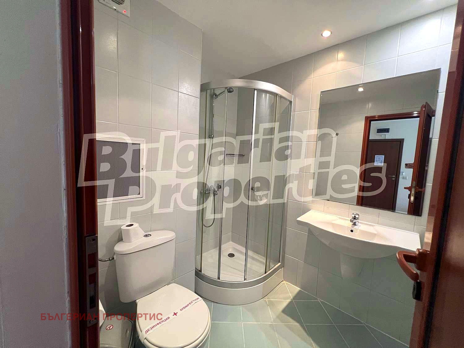 оборудвана баня с монтирани душ-кабина, санитария, аксесоари и огледало;