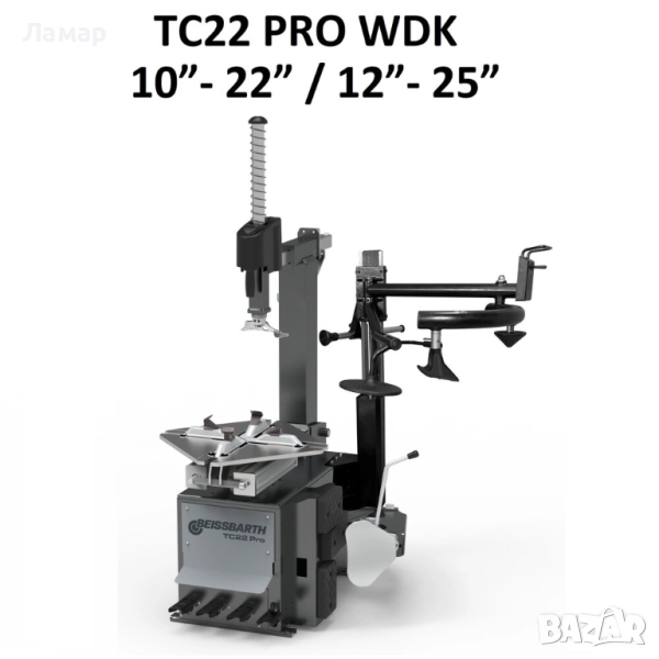 Новата серия гумодемомтажни машини TC22 на BEISSBARTH е с пневматична падаща колона и обхват на захватите 10”-22”/12”-25”. Моделите (трифазните версии) са с двускоростен въртящ се монтажен плот и имат пневматична блокировка на монтажната глава и пневматично отлепващо рамо. TC22 са проектирани за нуждите на ненатоварени сервизи за гуми, но осигуряват добра производителност и комфорт на работа. Възможност за доокомплектоване с богата гама опционални аксесоари