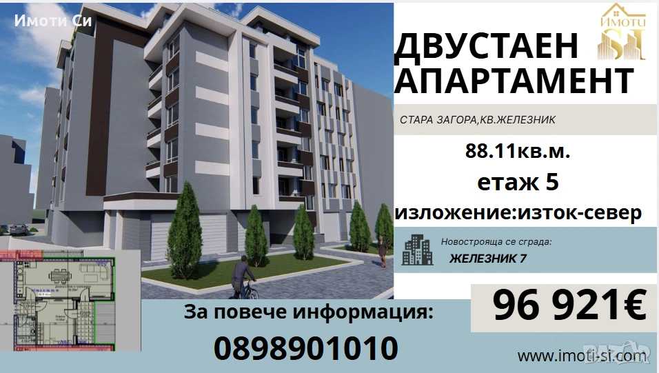 "Имоти Си" продават двустаен апартамент, находящ се в град Стара Загора,квартал Железник