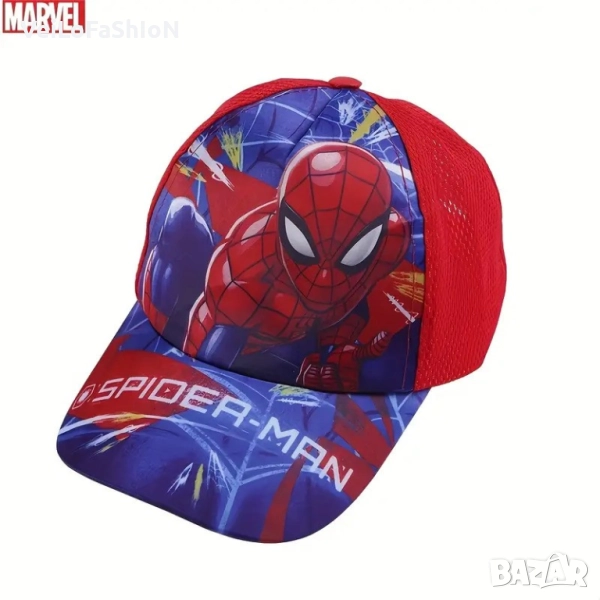 Нова детска шапка с козирка със супергероя Спайдърмен в червен или син цвят.