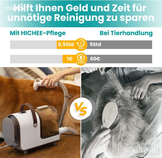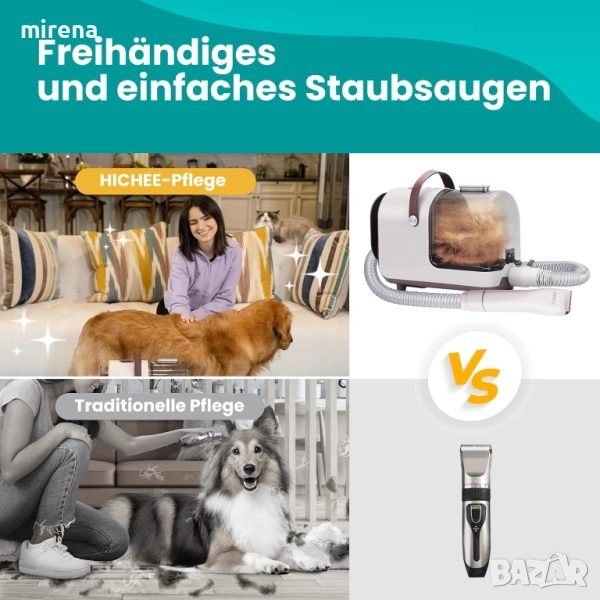 Машинка за подстригване на кучета HICHEE с прахосмукачка, 13 kPa, Силна всмукателна мощност, 2.5 л, Професионален комплект за подстригване на домашни любимци, Тиха машинка за подстригване на кучета и котки, 6 доказани инструмента за грижа
