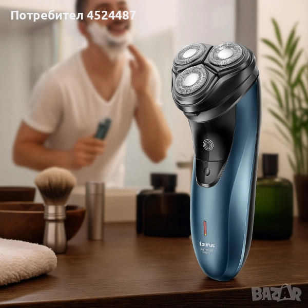 Продукт: Самобръсначка Taurus 3-Side Shave IPX7; Основен проблем: Раздразнения и неравномерно бръснене; Решение: Технология Total Curve с плаващи глави и двойни пръстеновидни ножчета от неръждаема стомана; Функции: Водоустойчива IPX7 – мокро и сухо бръснене; Изскачащ тример за бакенбарди и мустаци; До 45 минути автономност; Зареждане чрез USB; Индикатор за зареждане; Подвижна и лесно почистваща се глава; Допълнителни ползи: Ергономичен дизайн за комфорт; Компактност и удобство при пътуване; Лесна поддръжка (включена четка за почистване и защитна капачка); Гаранция: 12 месеца.