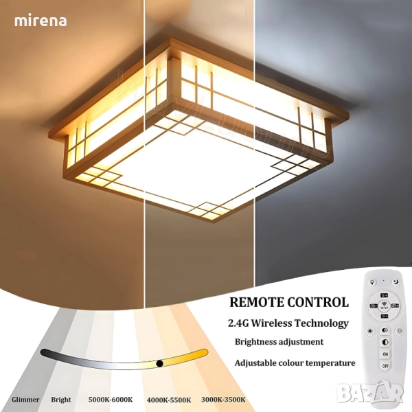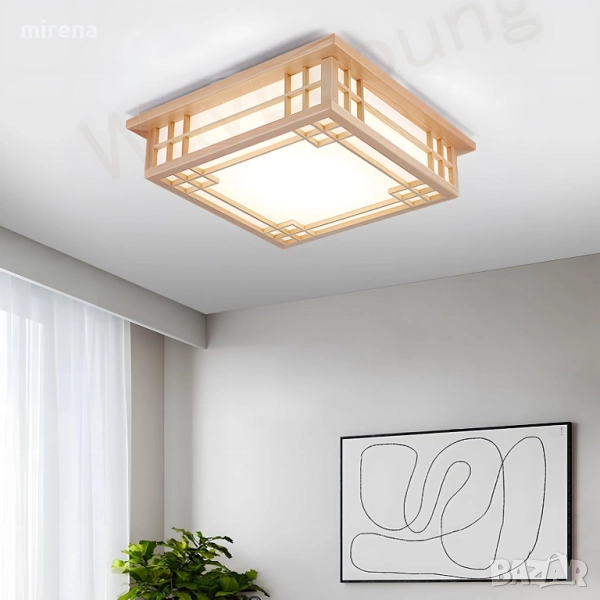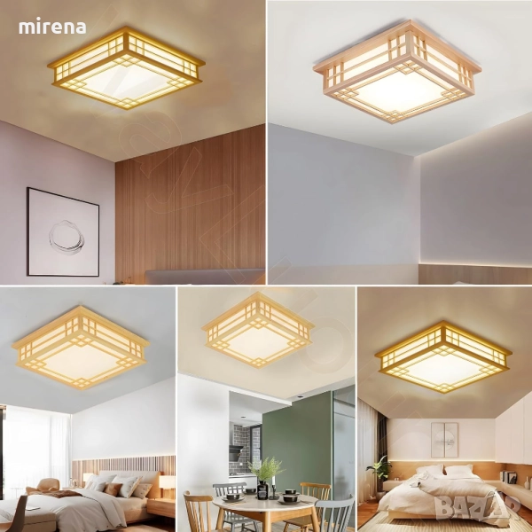 Дървен полилей ЛЕД LED, японски стил, квадратна, дистанционно 215