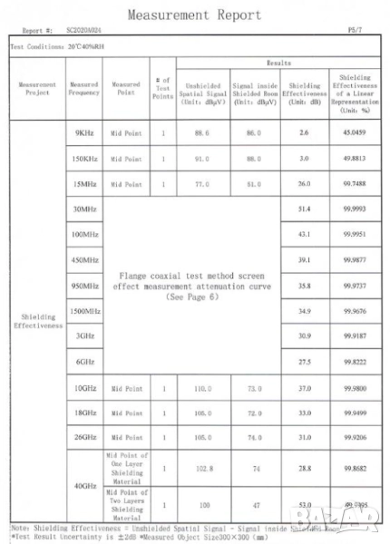 Защитни свойства (затихване/отразяване): от 10 MHz до 18 GHz (99,99%)