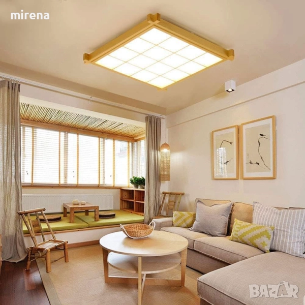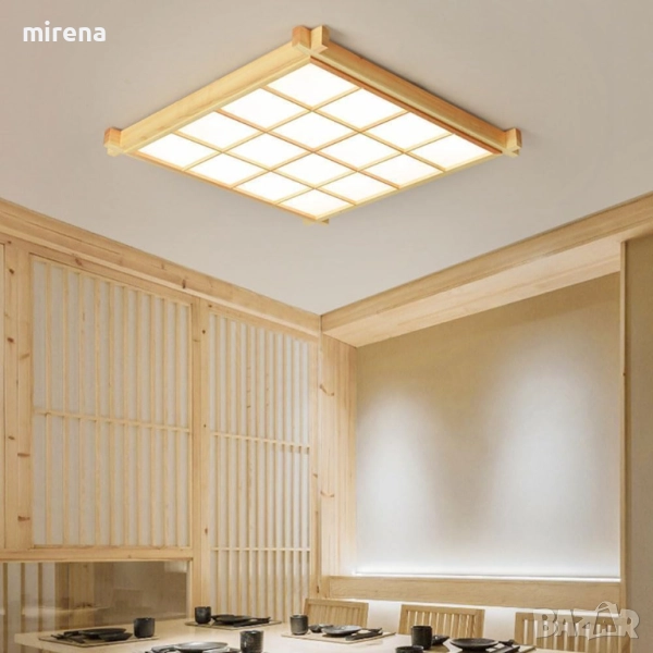 Таванна лампа с квадратни трупи в японски стил: Ретро и семпъл дизайн, красив и уникален, добавя красива декорация към вашия таван, придава на атмосферата различен изискан вкус, подходяща е за вас, които имате изисквания за качество, съвместима с живота и прави вашето пространство уникално.