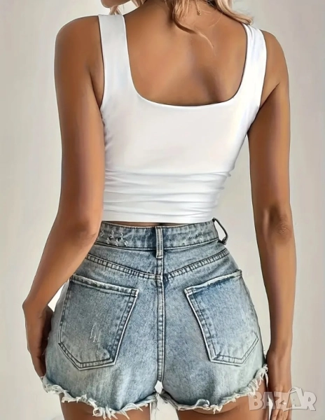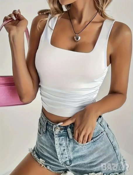 Нов дамски топ с дебели презрамки и красиво U-образно деколте. Еластична и лека материя.
