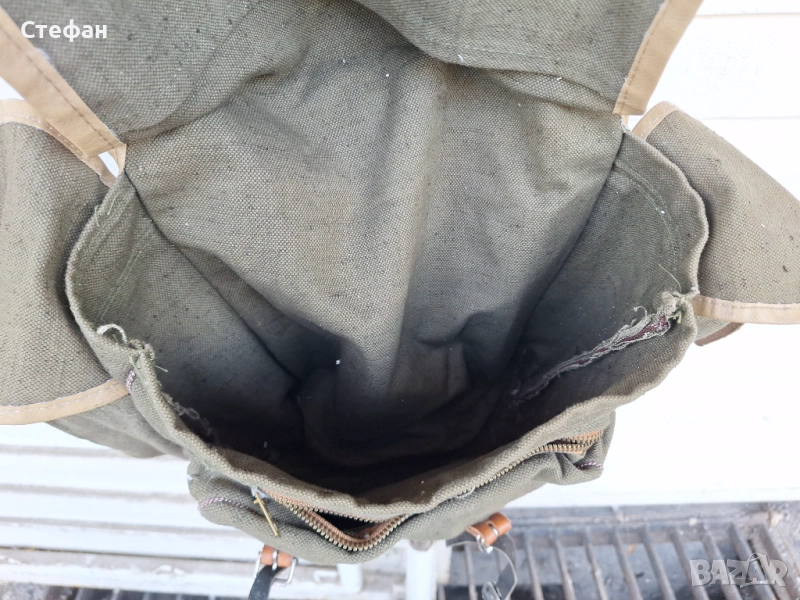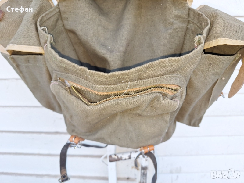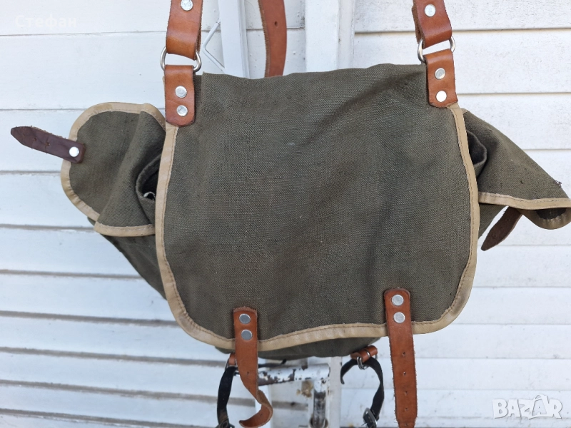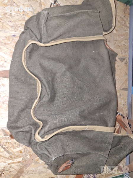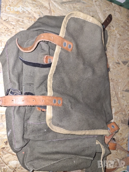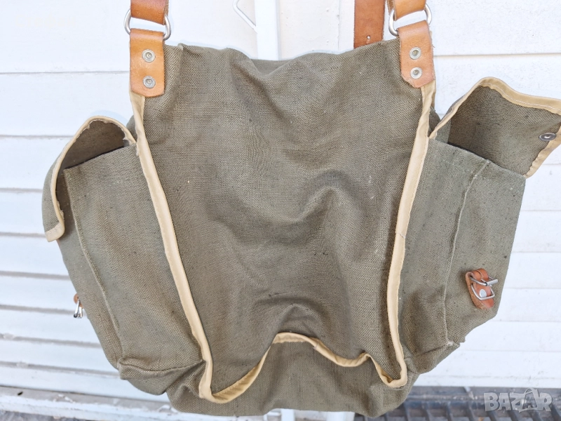 Брезентова чанта тип сухарка, от старото производство, подходяща за лов, особено за летния птичи лов, подходяща също за туризъм и риболов. Чантата е в отлично състояние, буквално нова, видимо и от снимките, почти не е използвана. Дължина на чантата - 27см, ширината/дебелина - 15см, височина - 22см. Има допълнителен джоб отпред, също и два малки джоба отстрани, кожена презрамка за рамо.