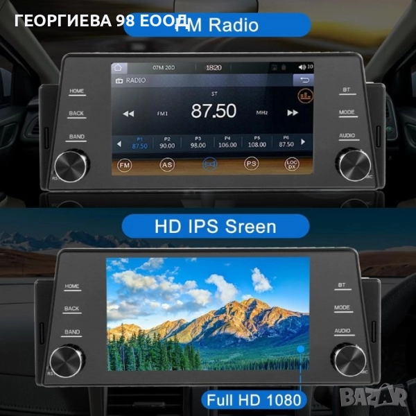 Модерна мултимедийна система за автомобил с голям сензорен дисплей и поддръжка на Wireless Apple CarPlay и Wireless Android Auto. Осигурява лесен достъп до навигация, музика, разговори и съобщения директно от екрана, без нужда от кабели.