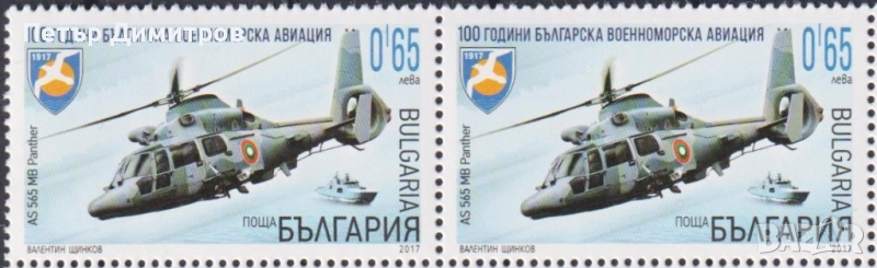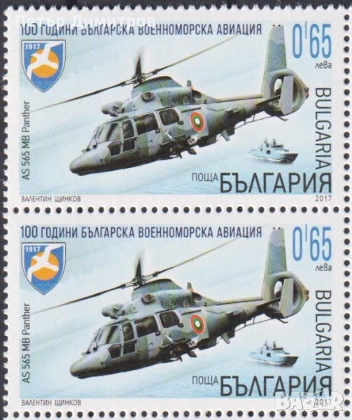 1. Чиста марка 100 години Военноморска авиация 2017 от България. Тираж 11000. Цена 1,50 лева (сн. 1)