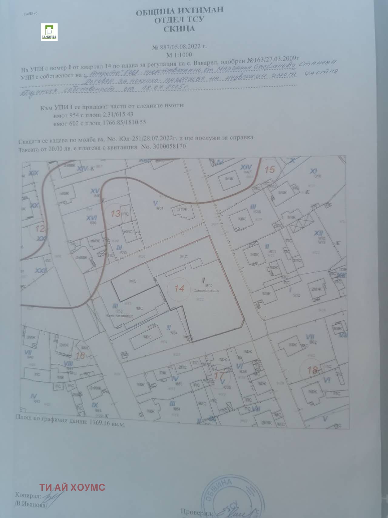 По документ за собственост сградата е 416 кв.м., а след дострояване /което е маркирано на едната скица/ площта е 620 кв.м.