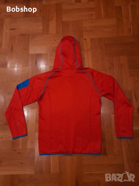 Отлично състояние, оригинален продукт, размер по етикет Medium, материя - 69% полиестер, 27% необработена вълна и 4% еластан, щампирано лого на лицевата част и качулката, джоб с цип на левият ръкав, регулация на качулката, произведено в Латвия.