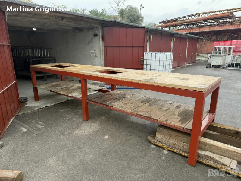 Продавам здрава и практична работна маса, изработена от дебели метални профили, гарантиращи стабилност и дълъг живот.
